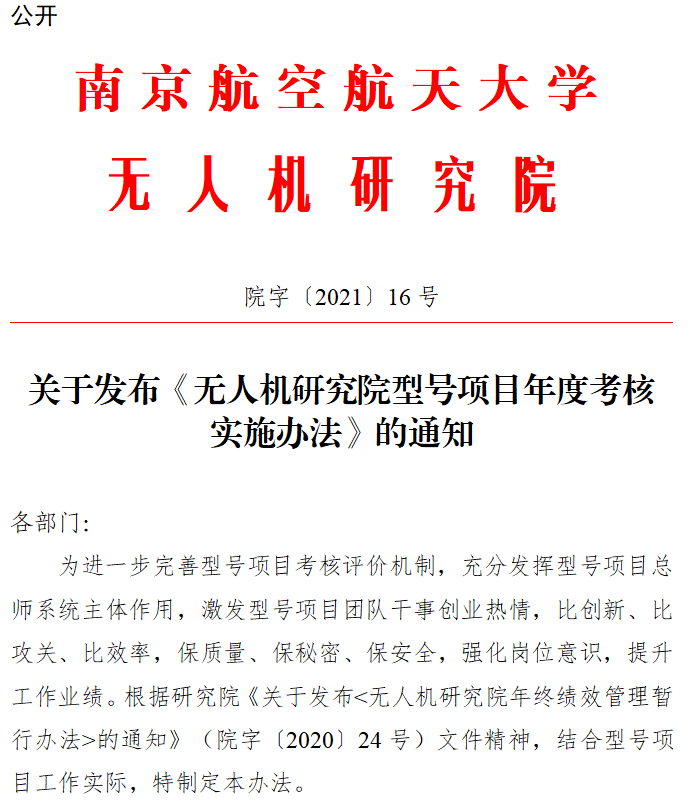 近期,无人机研究院在推进体制机制改革中,为进一步激发改革内生动力、干事创业活力,分别出台了面向型号、科研两大领域的年度考核实施办法。