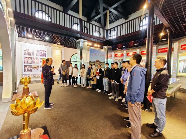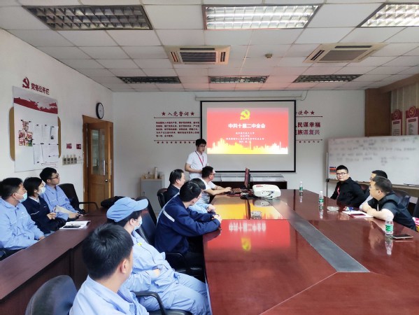 高效精密加工技术研究所导学团队首先来到走进南京晨光集团,与南京晨光集团下属某分厂团支部开展学党史主题团日活动。由李尧博士带领与会人员领学1975年中国共产党十届二中全会党史相关内容,徐广超就本次主题团课发表学习心得和感悟。随后,分厂团委书记冯天民就基层党建、团建工作展开经验交流发言。