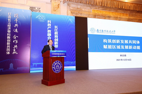 董志毅代表中国民用航空局向大会致辞。他说,推动长江经济带发展是党中央确定的重大部署,民航局党组高度重视,积极推进多领域民航强国建设的进程。同时,民航局认真贯彻落实全国教育大会和中央人才教育会议精神,支持以南京航空航天大学为代表的民航特色院校建设人才培养和科技创新合作体,统筹做好民航科技、教育和人才工作,进一步增强教育服务长江经济带高质量发展的能力,进一步助力长江教育创新带的科教产教融合发展,促进长江经济带战略实施,为推进中国特色社会主义现代化国家建设作出重要的贡献。