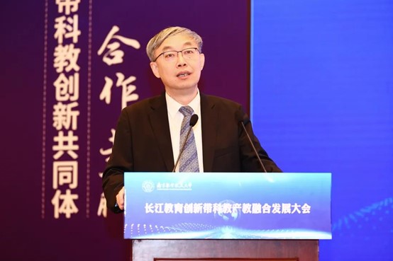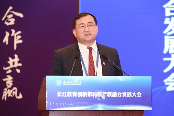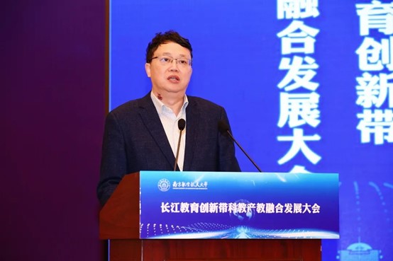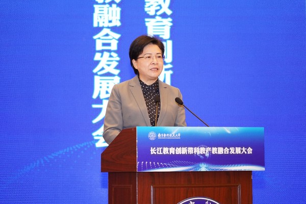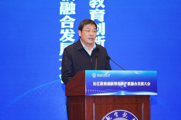 韩立明对大会召开表示祝贺。她说,近年来,南京认真贯彻落实习近平总书记关于科技创新的重要论述,充分发挥科教优势,推动创新竞争力大幅提升。实践中,我们以建设重大科创平台为抓手,全力争创综合性国家科学中心;以赋能实体经济为导向,全力推进产业科技创新;以构建市场化机制为纽带,全力促进产学研合作成果转化;以服务创新主体为牵引,全力营造一流创新生态,取得了一定成效。南京与在宁高校产学研合作持续深化,南航国际创新港等一批高水平创新平台深度融入地方经济发展。推动长江经济带高质量发展,是以习近平同志为核心的党中央作出的重大决策。一年前,习近平总书记在南京擘画了长江经济带“五新三主”发展蓝图,给我们以极大鼓舞。南京将沿着总书记指引的方向,全力开动创新引擎,勇当我国科技与产业创新“开路先锋”。衷心希望大会促进思想碰撞、链接各方资源,为建设以创新为核心、教育为中心、育人为重心的长江教育创新带注入强劲动力。真诚期待广大高校和企业与南京深度合作,共同开创科教融合、产教融合新局面。