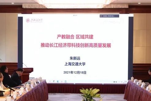 东华大学校长俞建勇院士作题为《以科教产教融合蓄积社会服务动能 有效助推长江经济带发展》的报告