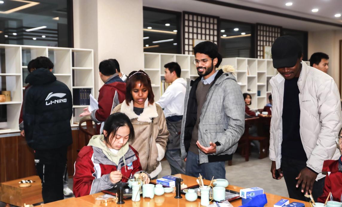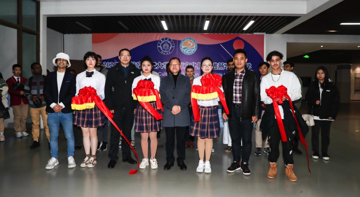 现场举行了隆重的国际文化展开幕仪式,两校领导共同剪彩。留学生们在国家展板前为同学们介绍国家特色,燕子矶的同学们也邀请留学生走访国学社团,共同了解国学文化,互相交流。