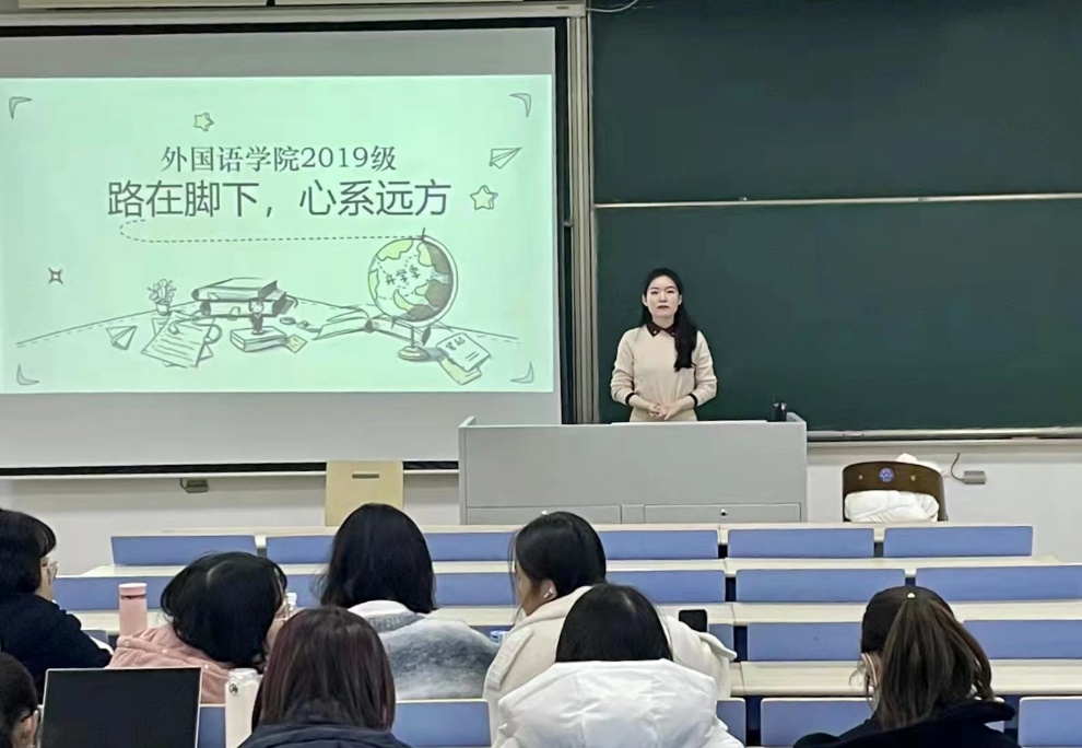 12月17日,外国语学院开展了“路在脚下,心系远方” 2019级本科生主题公开月讲评,本次月讲评由本科生辅导员彭欢主持召开, 2019级全体同学参加,旨在为处在大三年级这一关键时期的同学们答疑解惑。