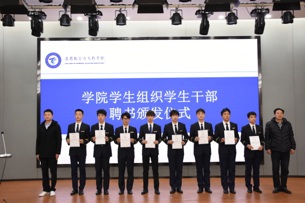 2021年12月18日,通用航空与飞行学院在巡天楼二楼报告厅召开飞行学生干部聘任大会。学院党委副书记魏慧冬,学院团委书记范伟,辅导员孙献策、陈晓善、李永超、宋歌、陆海林出席大会。