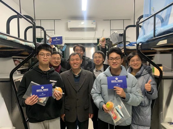 12月17日下午,电子信息工程学院/集成电路学院党委书记聂东林、常务副院长潘时龙、副院长张小飞、党委副书记雷蕾、2018级本科生辅导员李宇飞前往学生宿舍慰问考研学子,为他们送上冬日的一份温暖,祝福同学们考研成功上岸。