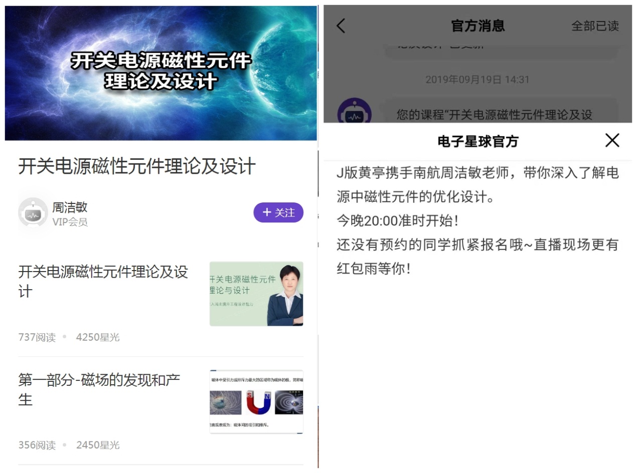 此前,周洁敏还在电子星球eestar等平台开设了《开关电源磁性元件理论与设计》公益课程,通过开设这些课程,让更多相关研究人员有途径对相关知识进行系统的学习,从而在实际工作中提升产品设计的能力,缩短开发周期,提升效率。