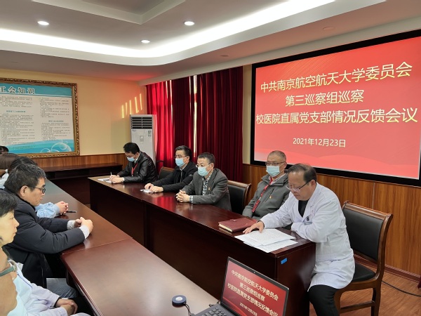 根据校党委巡察工作统一部署,12月23日下午,校党委第三巡察组巡察校医院直属党支部情况反馈会在将军路校区医院会议室召开。校长助理黄炳辉同志,校纪委副书记、巡察办主任张海艮同志以及第三巡察组领导出席了会议;校医院领导班子全体成员、医院中层干部、支部党员、民主党派代表和职工代表参加会议。会议由刘协和同志主持。