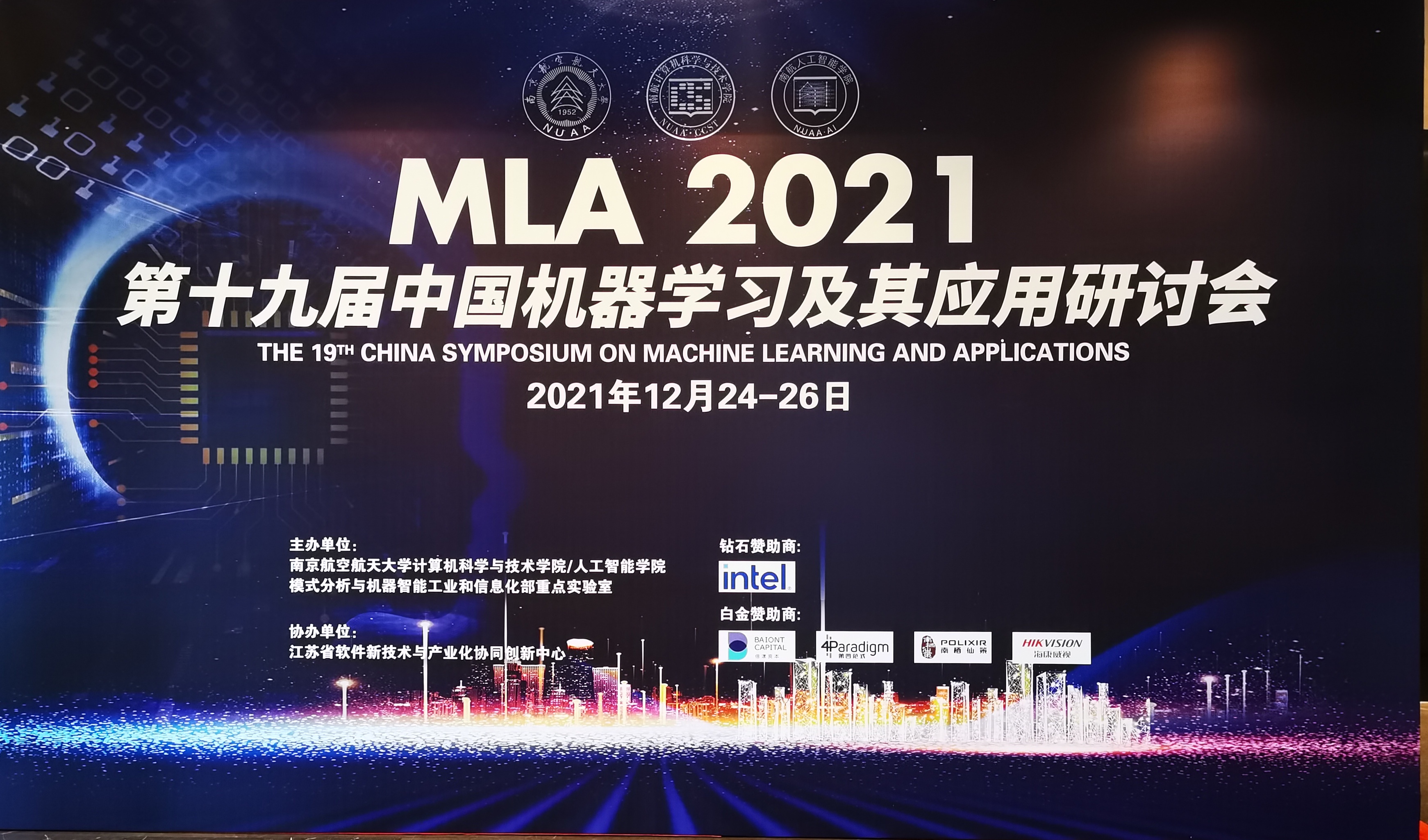 2021年12月25日至26日,第十九届中国机器学习及其应用研讨会(MLA 2021)在南京召开。本次会议由南京航空航天大学计算机科学与技术学院/人工智能学院、模式分析与机器智能工信部重点实验室主办,江苏省软件新技术与产业化协同创新中心协办,我校黄圣君教授和南京大学张利军教授担任程序主席。本次大会采用线上线下结合的形式举行,包括12个大会特邀报告、15个顶会回顾报告、38个顶会论文Spotlight报告和4个工业界报告。由于疫情原因,线下规模限制在500人,线上线下参会人员累计超过3万人。