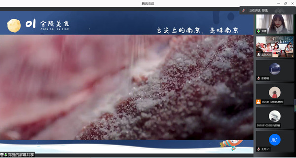 授课开始,郑捷通过播放南京美食的介绍视频和特写图片,正式引入今天的课程。她以南京的特色鸭子为例,配以生动幽默的讲解,详细地介绍了多种南京美食,带领孩子们了解了南京丰富多样的饮食文化。