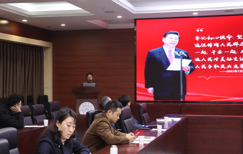 活动开始,学校党史宣讲团成员,马克思主义学院宋青励博士为大家做了题为《见证-投身:没有硝烟的战斗》的党史学习教育专题宣讲,她结合对南京梅园新村纪念馆伟人风范和梅园精神的体悟,细致阐述了伟大建党精神的深刻内涵和重大意义,号召广大党员弘扬伟大建党建设,接续奋斗,做新时代的合格答卷人。