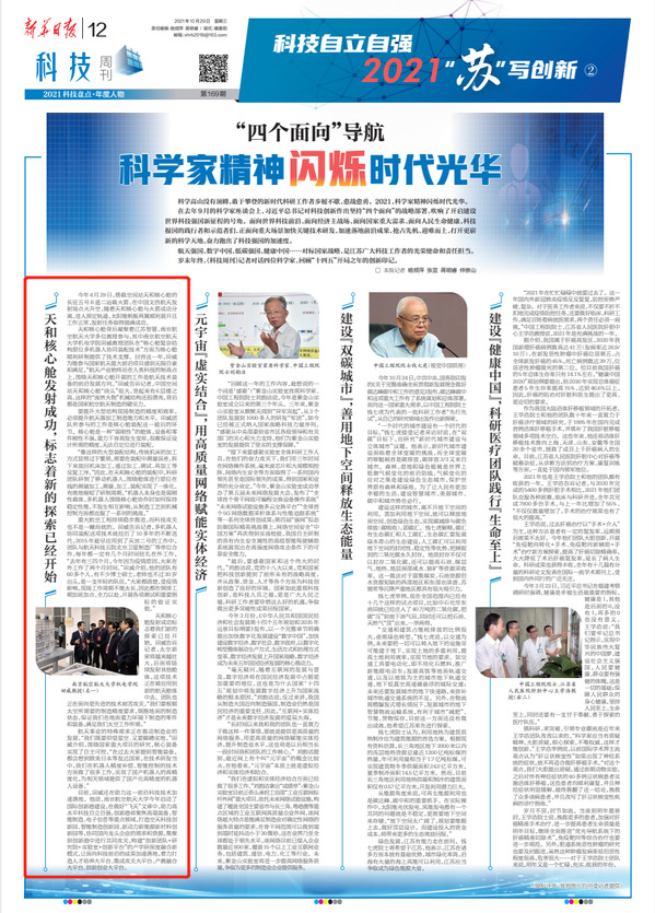 编者按:12月29日,《新华日报》科技周刊年终盘点,推出专题报道《“四个面向”导向 科学家精神闪烁时代光华》,对话江苏四位科学家,回顾“十四五”开局之年的创新印记。南航创新港建设管理办公室副主任、机电学院田威教授受邀对话,畅谈天和核心舱背后团队智慧以及南航国际创新港建设。现刊载相关报道内容如下:
