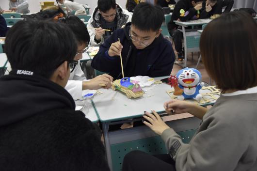 最后一个环节是以小组为单位DIY飞机模型或小车模型,对模型进行组装、上色,切身感受模型各个部件,增强对飞机、车辆结构的认识。各小组成员相互展示着自己的作品,表达上色构思,其乐融融。