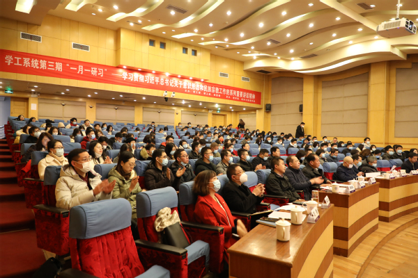 12月28日,学工系统第三期“一月一研习”集体政治理论学习会召开,专题学习习近平总书记关于意识形态和民族宗教工作的系列重要讲话精神。校党委副书记刘宇雷,校党委常委、组织部部长、统战部部长李遥,秦淮区民宗局局长李军出席会议。秦淮区民宗局、瑞金路街道相关领导,学工部、研工部、校团委等校内有关单位负责同志,各学院党委副书记以及全体专兼职辅导员参加研习。