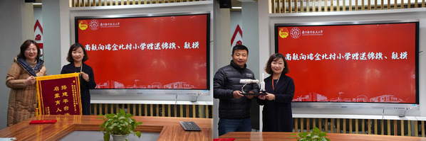 结课仪式上,王静围绕惊喜、感谢、携手三个关键词表达了参加此次结课仪式的感受。她充分肯定了研支团成员及小朋友们的课堂表现,对各位领导、教师给予南航研支团的帮助和关怀表示感谢,希望未来进一步加强两校间社团活动、三航科普等方面的互动互联。随后,王静代表校团委向瑞金北村小学赠送锦旗和航模。