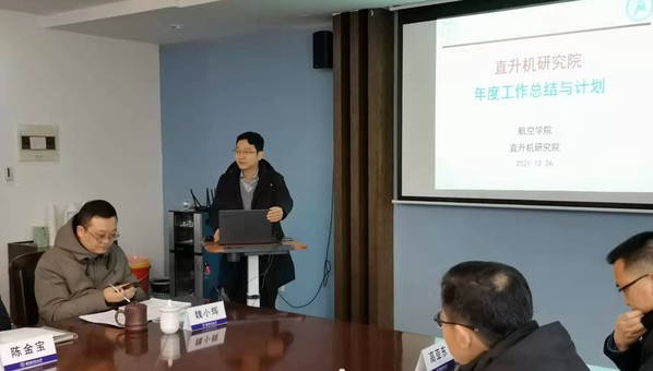 随后,直升机旋翼动力学国家级重点实验室副主任、科研院副院长招启军汇报了直升机研究院2021年度工作总结、2022年工作计划以及完善后的直升机研究院建设方案,包括直升机研究院建设原则、建设目标、组织构架、政策支持等几方面内容,并对2021年12月26日直升机研究院年度工作会上相关老师对具体方向和实际管理提出的意见及建议进行了解答。