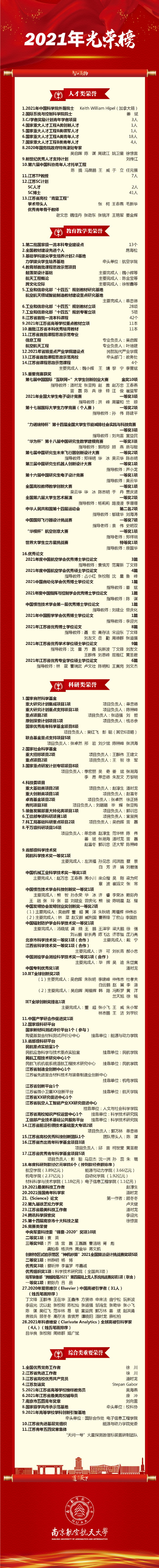 编者按:过去的一年,全体南航人凝心聚力,砥砺前行,以新应变,乘势而上,以一往无前的奋斗姿态交出了一份厚重提气的年度“答卷”,南京航空航天大学2021年光荣榜新鲜出炉。