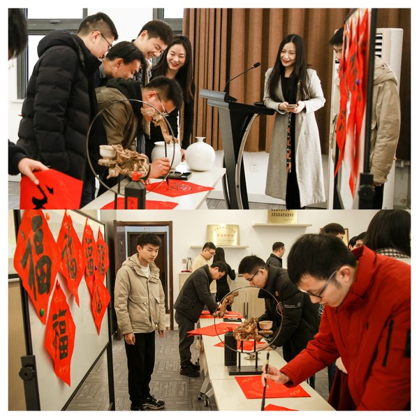 与会大学生创业者们纷纷参与到写福字、题春联的环节,亲笔写下对新一年的美好祝愿。