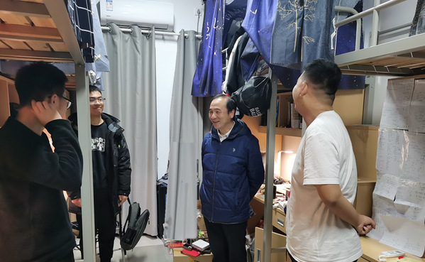 1月6日下午,自动化学院党委书记李文雷、院长江驹带领学院领导班子和辅导员前往天目湖校区新生宿舍进行走访慰问,与同学们亲切交谈,关心学生一学期的学习生活情况以及寒假返乡可能遇到的困难并给予帮助。