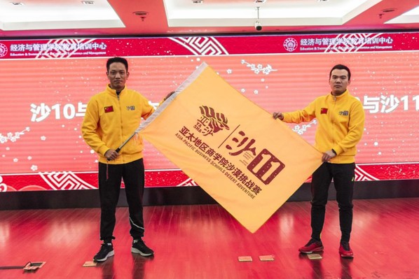 杜刚为朱志祥、许正蓓、王一鸣、佘开妍颁发了队长、领队、记者聘书。沙10队长与沙11队长举行了交接旗仪式,沙11队长朱志祥郑重地从沙10队长陈权全手中接过了亚沙的旗帜。