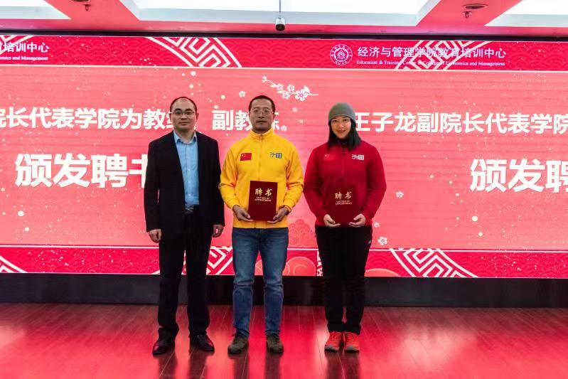 在聘书颁发仪式上,王子龙为汪文君、宋伟颁发了总教练、副教练聘书。