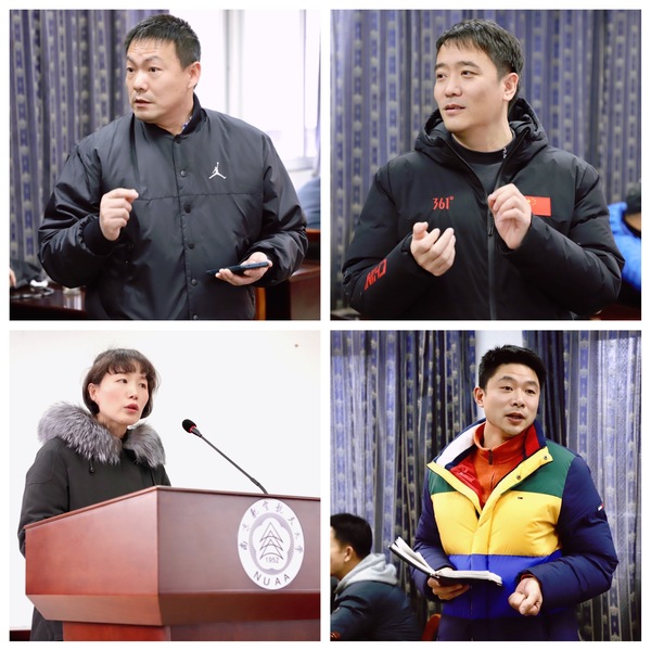 马彬、徐昶楠、于祥爱、邓杰代表教研室、体质测试与评估教研室,对新学期选项课、航体课、疫情期龙猫打卡、年级统考、课程补选与高年级体测课工作等教学任务进行了安排与部署。