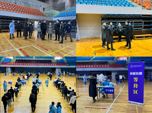 为落实疫情防控工作要求,校区于2月18日至21日在东区体育馆组织开展四批次师生全员核酸检测。校区管委会积极对接江宁区高校开学“五大员”和江宁开发区疫情防控校园组,交流落实开学准备工作情况;协调各职能部门和医疗机构,组织100余名师生志愿者共同参与现场检测,协同学生管理部门和各相关单位综合采用信息登记、数据比对、跟踪核查、分类反馈的方式,确保在校师生应检尽检,不漏一人。