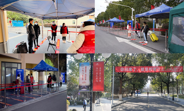 根据学校开学返校工作安排,学生分三批次返校,符合返校条件的学生须于返校3日前,按照分批报到的时间提交返校申请。学生入校时经人脸识别、红外测温、苏康码和行程码核验通过后方可返回宿舍。将军路校区协同学生处、团委、保卫处、后勤集团、江苏航宇后勤服务公司、校医院等相关部门,认真做好氛围营造、返校核验、行李接驳、车辆疏通、特殊情况处理等各项工作,为学生平稳返校提供了有力保障和暖心服务。