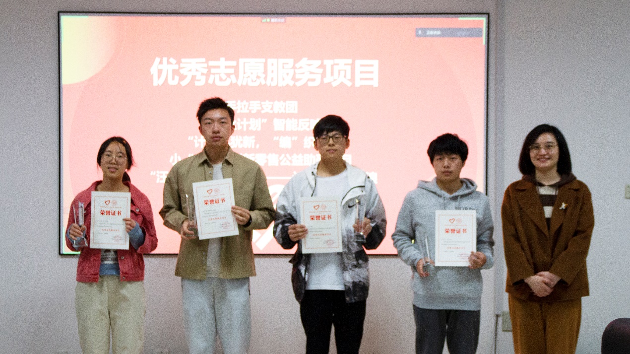 耿瑞为获奖志愿者和志愿服务项目负责人颁发了荣誉证书,向获奖同学表示了祝贺和感谢。梁家宁、程昊川、袁尔杭3名志愿者分享了他们的志愿服务故事,手拉手支教团、“计”忆犹新,“编”织未来少儿编程团队分享了志愿团队的发展历程和心得感悟。