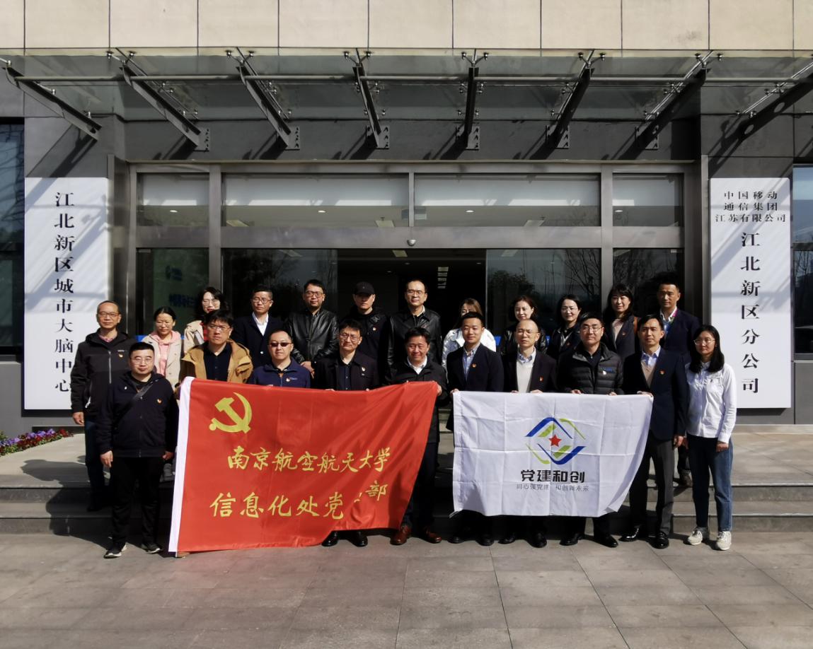 为深入学习贯彻习近平新时代中国特色社会主义思想,认真落实新时代党的建设总要求,持续强化党建引领发展、聚力发展、融合发展,不断激发基层党组织工作活力,2022年3月10日,南京航空航天大学信息化处党支部前往中国移动长三角(南京)数据中心,与中国移动通信集团江苏省有限公司南京分公司玄武秦淮党总支开展“党建和创”共建活动。