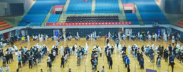 在江宁开发区管委会医护团队支援下,经校内各单位近9个小时的连夜奋战,秉持“应检尽检、不漏一人”的原则,截至3月14日凌晨4时22分,将军路校区共计完成20071名师生员工的检测工作。