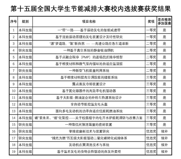 据悉,“全国大学生节能减排社会实践和科技竞赛”由教育部高等教育司主办并委托教育部高等学校能源动力学科教学指导委员会举办,以“节能减排、绿色能源”为主题,以“培养普及节能减排意识,提高科技创新能力”为宗旨的全国高校能源与动力工程学科和我国能源与节能减排领域的一项盛大赛事,被纳入高校创新人才培养暨学科竞赛评估项目。我校高度重视该赛事的组织选拔工作,近年来,已推荐了两百余支团队参与国赛,成绩斐然,连续多年捧回国赛优秀组织奖。