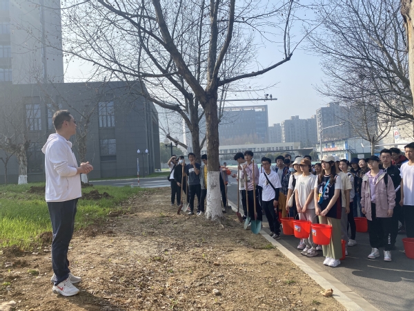 活动伊始,学院邀请园林专家为同学们讲解了挖坑、回填、栽植、覆土等种植技能和劳动工具的使用方法。随后,张林进行了动员,他指出,学院贯彻落实全国教育大会精神,逐步构建德智体美劳“五育”并举的教育体系,将劳育与立德、增智、强体、育美相融合, “以劳树德”、“以劳增智”、“以劳强体”、“以劳育美”,他希望同学们不负春光,亲近自然,通过植树活动,牢固树立劳动最光荣的观念和人人爱绿植绿护绿的文明风尚。