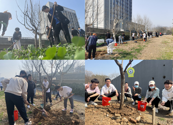 春风拂绿,万象更新,3月12日第44个植树节来临之际,长空学院组织师生前往将军路校区南部通道,开展以“长空植新苗,劳动向未来”为主题的义务植树活动,张林副院长、党政办、学工办部分同志和学院70余名同学共同参与了植树活动。
