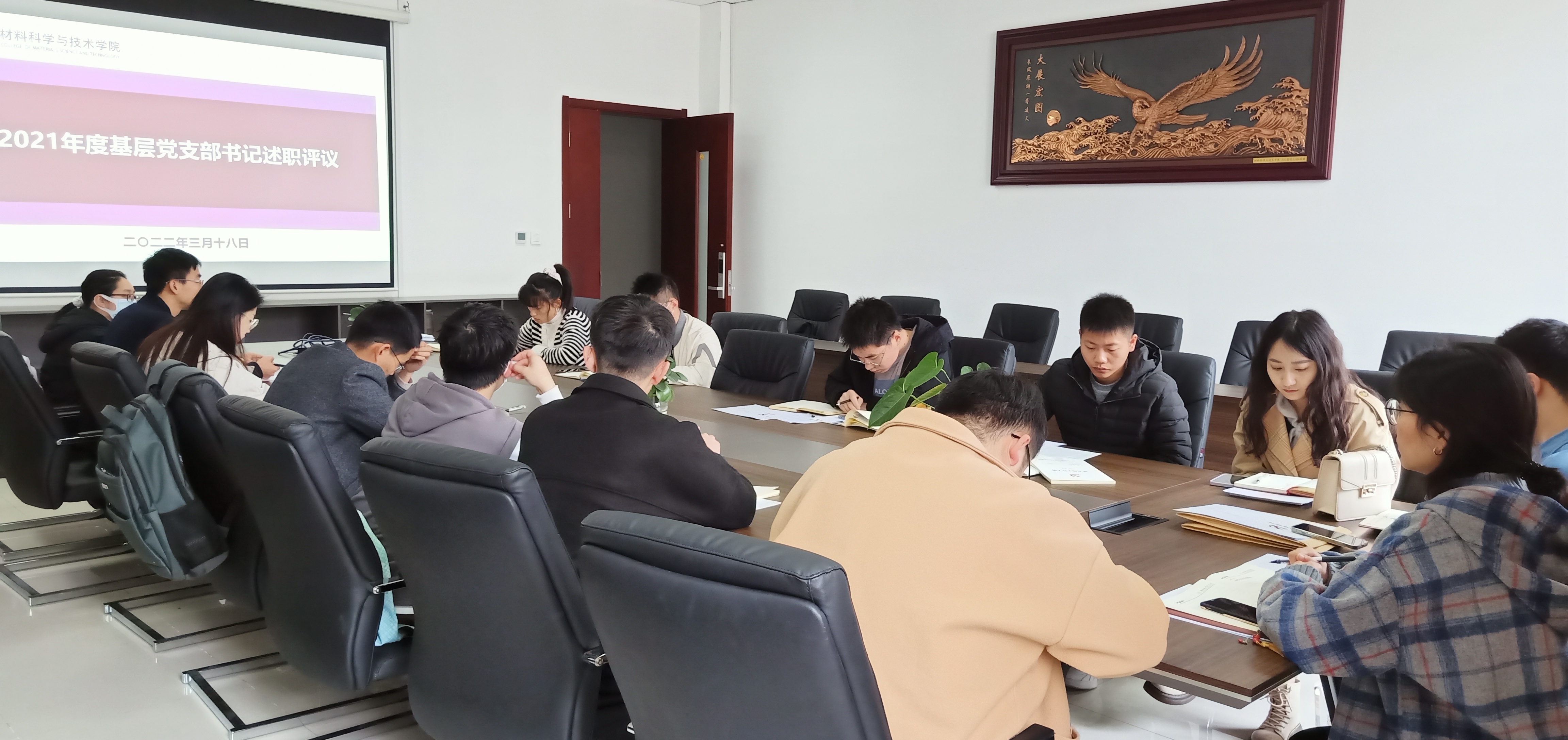 近日,材料科学与技术学院开展2021年度党支部书记述职评议。教工党支部述职由学院党委组织,学生党支部述职由学生党总支组织开展。