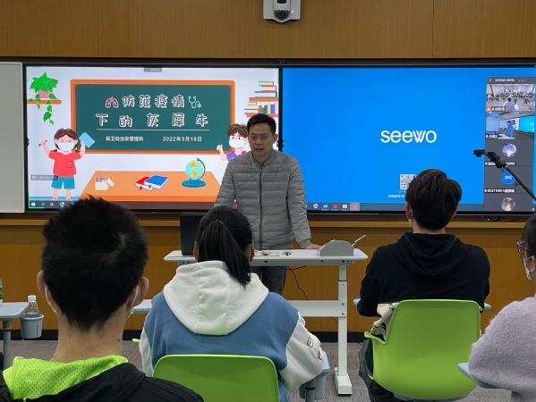 同学们经历过疫情爆发之出的恐惧,也经历了常抓不懈的厌倦。针对长时间的斗争中逐渐滋生出的麻痹思想和侥幸心理,侯新闻通过讲述发生在身边的案例,引出疫情防控中的“灰犀牛”事件,并邀请校保卫处周栋栋老师现身说法,引导同学们认识到一次侥幸,一次麻痹,一次大意就有可能导致“雪崩式的灾难”。侯新闻倡导同学警惕生活中的“灰犀牛”事件,勤于跟自己的侥幸心理做斗争,做好个人健康的第一责任人,守牢健康安全的底线。