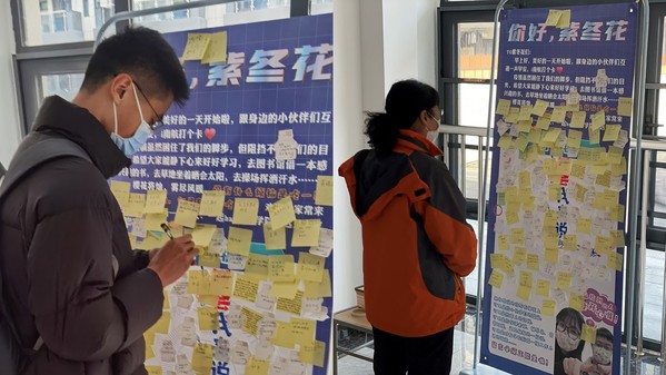 没有一个冬天不会过去,没有一个春天不会到来。新学期伊始,一场出乎预料的“倒春寒”阻止了同学们进出校园的脚步,但同学们对校园生活的热爱却没有因此消减。为切实了解学生需求,全力保证学生身心健康,近日,自动化学院2021级在天目湖校区东篱院B4、南山苑B5宿舍入口处举行了疫情留言板暨糖果派送活动。