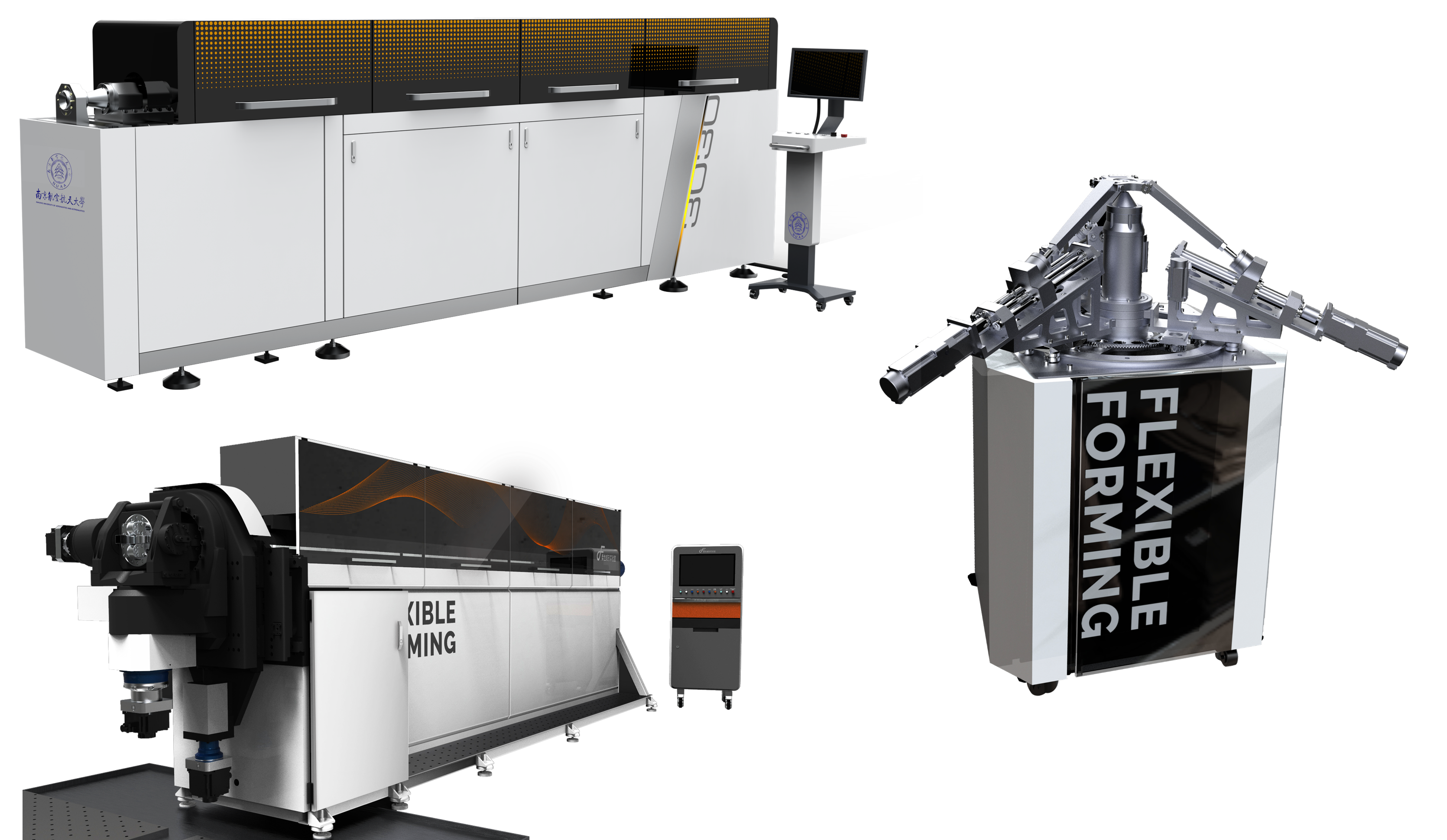 柔性成形技术及装备团队长期立足于国家在航空航天、核能工程、汽车工程等方面的重大需求,在关键制造技术及装备研发方面取得了丰硕的科研成果。团队在国家相关重点、重大项目支持下,先后突破了长寿命陶瓷内衬模具制造关键技术、多轴联动精准控制与工艺解析关键技术及在线自适应纠偏关键技术。自主研发了国内首台六自由度管/型材自由弯扭复合成形装备、七轴联动并联机构自由弯曲成形装备、移动式/轻量化战时军机关键构件快速柔性成形装备,在总体构型、自由度以及综合功能方面不断优化和提升,为航空航天工程应用提供了重要支撑。