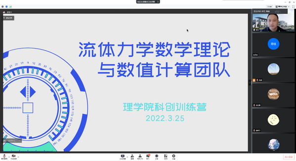 3月25日上午,“理学科创行”活动第二期于线上进行。经过前期自主报名,30位大一大二本科生参与了此次会议。本期活动,由流体力学数学理论与数值计算团队成员徐江讲授主讲,博士生宋自昊、李超,硕士生陈越,本科生蔡新之分别就各自主要研究方向进行了介绍。