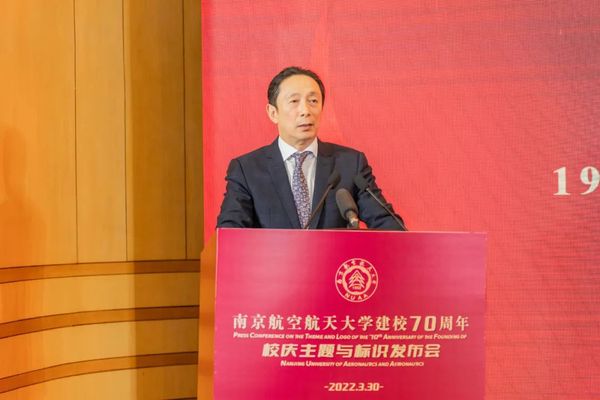黄志球代表学校宣读《南京航空航天大学70周年校庆公告(第二号)》,现场公布了70周年校庆主题与标识,阐述了校庆主题“问天七秩,逐梦一流”的释义,解读了校庆标识的涵义。