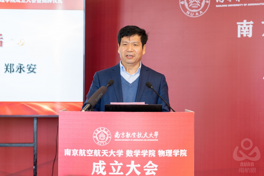 郑永安代表学校党委和领导班子成员对长期以来关心支持南航建设发展的专家领导以及为基础学科发展作出重要贡献的广大师生表示衷心感谢,并向新成立的数学学院、物理学院及两院师生表示热烈祝贺。他强调,加强基础学科建设,成立数学学院、物理学院,是学习贯彻习近平总书记关于教育重要论述、贯彻落实国家重大战略部署的具体行动,也是强化服务支撑高水平科技自立自强的实际担当,更是着力推进理科学科群高质量发展、加快建设特色鲜明世界一流大学的重大战略举措。