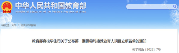 4月6日,教育部高校学生司公布了第一期供需对接就业育人项目立项名单,我校成功获批5个项目。此次申报自2021年12月启动,经校内发布动员、学院申报、学校审核、用人单位评审、协议签订等环节,最终我校与中国航天科工集团第二研究院、腾讯(科技)深圳有限公司、北京字节跳动科技有限公司、中移(苏州)软件技术有限公司、中孚信息股份有限公司达成合作意向。