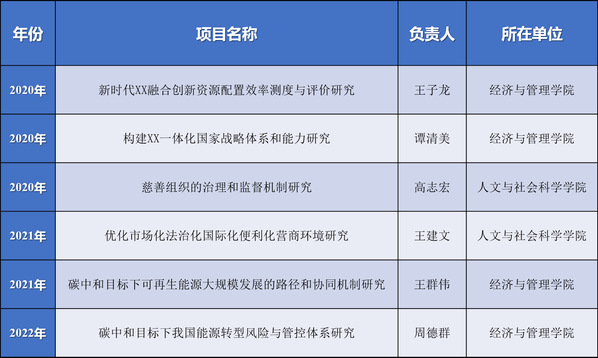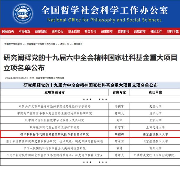 近日,全国哲学社会科学工作办公室正式公布了研究阐释党的十九届六中全会精神国家社科基金重大项目招标立项名单,我校经济与管理学院院长周德群教授领衔申报的《碳中和目标下我国能源转型的风险与管控体系研究》成功中标,获批立项。这是我校近三年来成功中标立项的第6个国家社科基金重大项目。