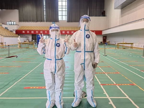 “我们俩是负责维持秩序,因为是两个班次,所以第一天整整站了七个半小时。”王彤,胡浩楠报名了同一天两个班次的志愿工作,在核酸检测现场,他们还需要穿上厚重的防护服,“一次穿了5个多小时防护服登记信息,真的是又闷又热”王彤说到自己第二次志愿活动的见闻,“大家最后脱防护服的时候,我看到一个头发花白的医护人员,我们年纪比较小都觉得很累,看到他真的十分心疼也十分敬佩。”