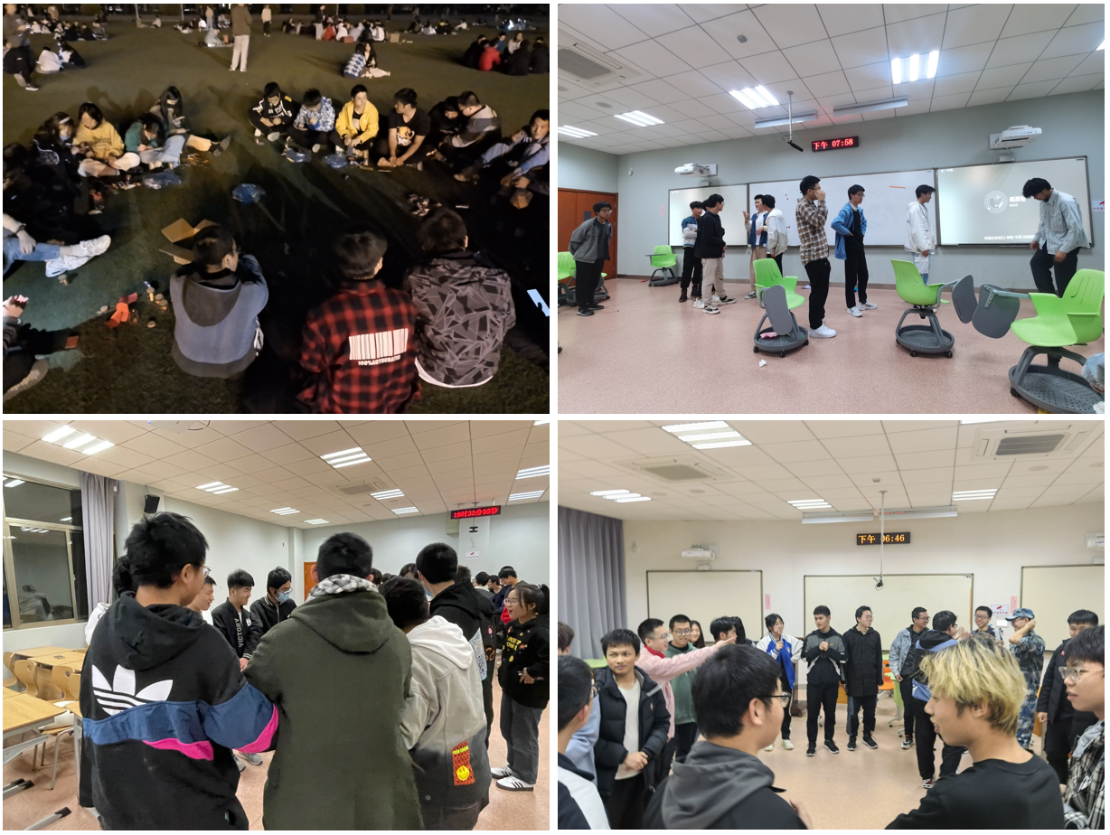 各班级在操场、活动室等不同场所,利用解圈圈、击鼓传花、大风吹等多种趣味小游戏破冰开场,开始了本次活动。欢乐、充满笑声的活动现场将活动推向高潮,全班同学积极参与,释放了学习与疫情带来的压力,提高了班级同学团结协作的能力。
