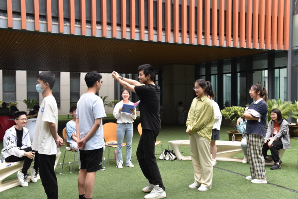 本次读书交流会通过“齐心协力,你来比划我来猜”游戏预热,全班同学随机分成四组,用肢体动作表达信息并逐一传递,最后成功猜出书名即为挑战成功,每队挑战结束后,由出题人介绍本书的内涵与主旨。