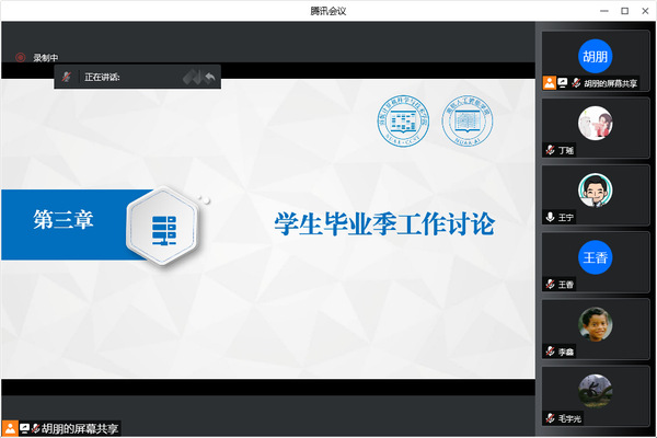 全体老师就学生毕业季工作进行讨论。胡朋对近期年级活动进行了简单梳理,并建议各班主任在疫情期间能够召开线上班会,关注重要时间点,积极参与年级、班级毕业季活动。