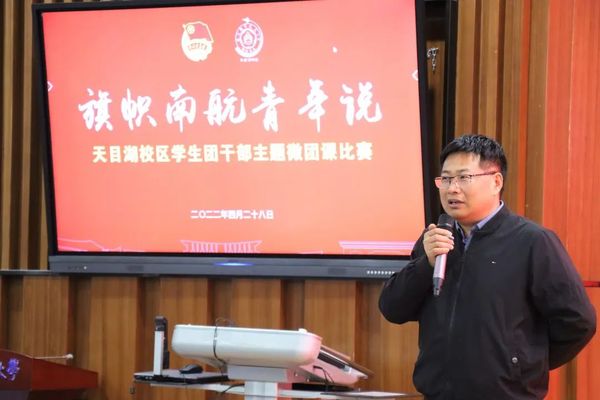 为迎接党的二十大胜利召开,团结引领广大团员青年坚定信念跟党走,勇做走在时代前列的奋进者,“旗帜南航青年说”学生团干部主题微团课比赛于4月28日晚在天目湖校区巡天楼一楼报告厅举行。校区党工委副书记贡海俊、校区党政办公室主任寇晓洁、校区团工委书记肖杰、各学院辅导员担任本次比赛的评委。