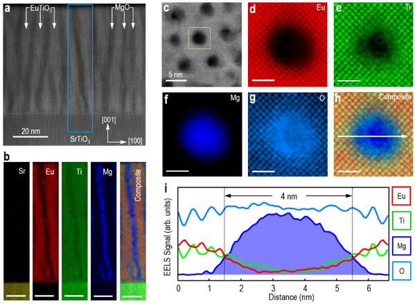 针对上述问题,南京航空航天大学李伟伟教授团队、杨浩教授团队与北京理工大学洪家旺教授团队、Max Planck研究所Hongguang Wang博士、华东师范大学姜凯博士,通过多铁性功能基元选择(EuTiO3)和自组装生长模式构建了三维垂直有序纳米复合薄膜(如图1所示),引入高达-2.98 GPa的负压力。在该负压力效应的作用下,通过调控多铁性材料EuTiO3中自旋-声子(晶格)-轨道的耦合,实现了丰富的铁磁-铁电转变和磁电耦合效应。相关研究成果以“Emergent multiferroism with magnetodielectric coupling in EuTiO3 created by a negative pressure control of strong spin-phonon coupling”为题发于2022年5月2日发表在Nature Communications上。