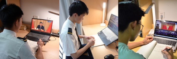 习近平总书记在讲话中指出,广大共青团员要认真接受政治训练、加强政治锻造、追求政治进步,积极向党组织靠拢,以成长为一名合格的共产党员为目标、为光荣。作为一名学生党员,我以自己的共产党员身份为荣,更明白我的肩上扛着使命荣光。在日常的学习生活中,我会不断总结反思,跟上时代的步伐,把稳思想之舵。我会自觉承担责任,将小我融入大我,用青春的热情和力量书写担当。同时,作为一名飞行学生,我深知飞行安全是这个时代党、国家和人民赋予我们的强烈责任和使命,我定当努力提升本领,坚持锻炼身体,为实现民航强国贡献自己的力量。