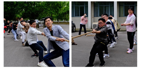 集体运动项目进行时,场上加油助威声此起彼伏。在最激动人心的“团结就是力量”拔河比赛中,团队凝聚力伴随着现场热烈气氛不断升温增强,导学师生眼神坚定、方向相同、齐心协力共同迎战。